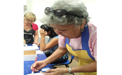 Para essa Oficina é necessário trazer: 1 caixa tipo baú no tamanho 28x28, goma laca indiana, álcool doméstico, lixa para madeira 220, tinta PVA na cor vermelho escarlate, tinta metálica vermelho, goldfix ouro, stencil de sua preferência, gel envelhecedor na cor tabaco ou betume, 1 aplique do tipo moldura em MDF, pincel de cerdas largas, pincel macio largo, pincel pituá, esponja de prato, pratinho de isopor, flores para decorar, pano para limpeza, potinho para colocar água e secador de cabelo.