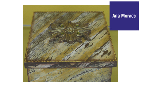 O(a) aluno(a) deverá trazer os seguintes materiais para sala de aula: tinta acrílica CORFIX nas cores: marrom escuro, amarelo ocre, camurça e areia ou pele, verniz acrílico brilhante, 1 rolinho de espuma, lixa 220 para madeira, 1 caixa 15x15, goma laca indiana, álcool doméstico para a limpeza dos pinceis, pincel do pelo macio, tinta relevo na cor ouro velho, 1 bandeja de isopor retangular, 3 folhas de papel toalha branco, arame maleável, secador de cabelo e material de limpeza dos pinceis.