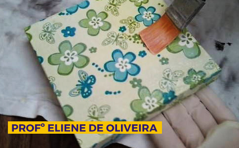 Atenção: o(a) aluno(a) deverá trazer os seguintes materiais para sala de aula: 1 caixa em MDF 15X15, 1 guardanapo de coelhinho, tinta PVA branca e cores combinando com o guardanapo, 50cm de fita com 3cm de largura aramada, pincel Tigre Ref.815 nº16, rolinho de espuma, pincel do pelo macio, goma laca incolor, material de limpeza, godê para tintas, secador de cabelo.