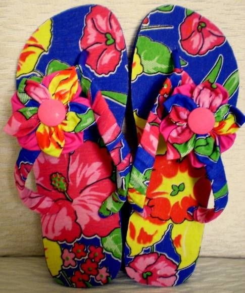 sandália com chita usando a técnica de decoupage. Além de lindas, são muito